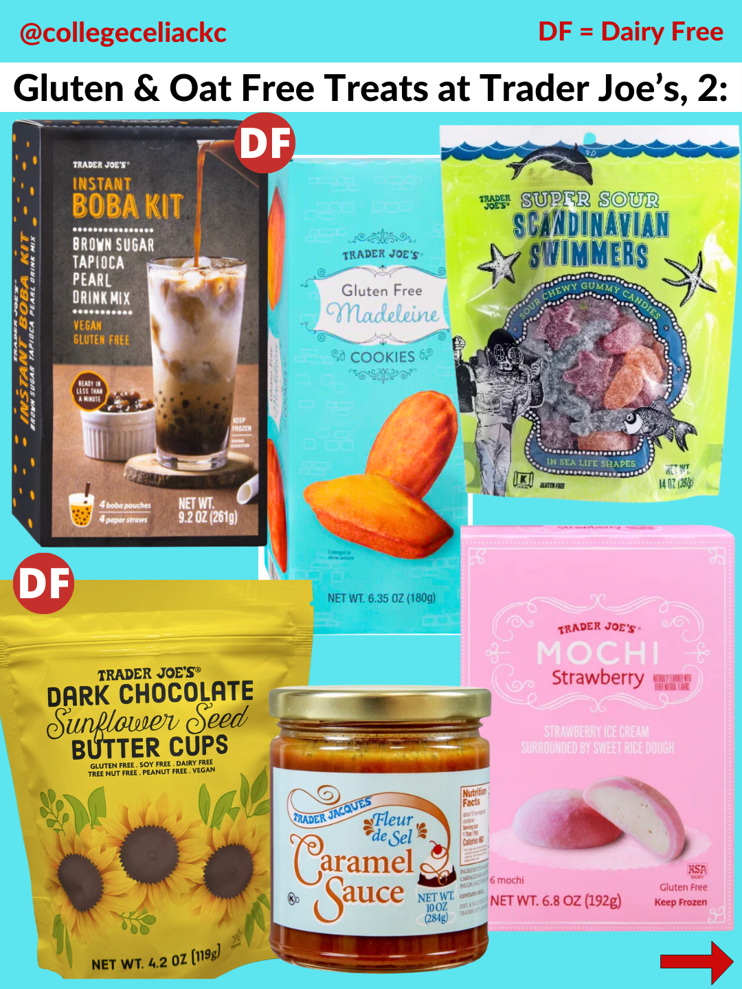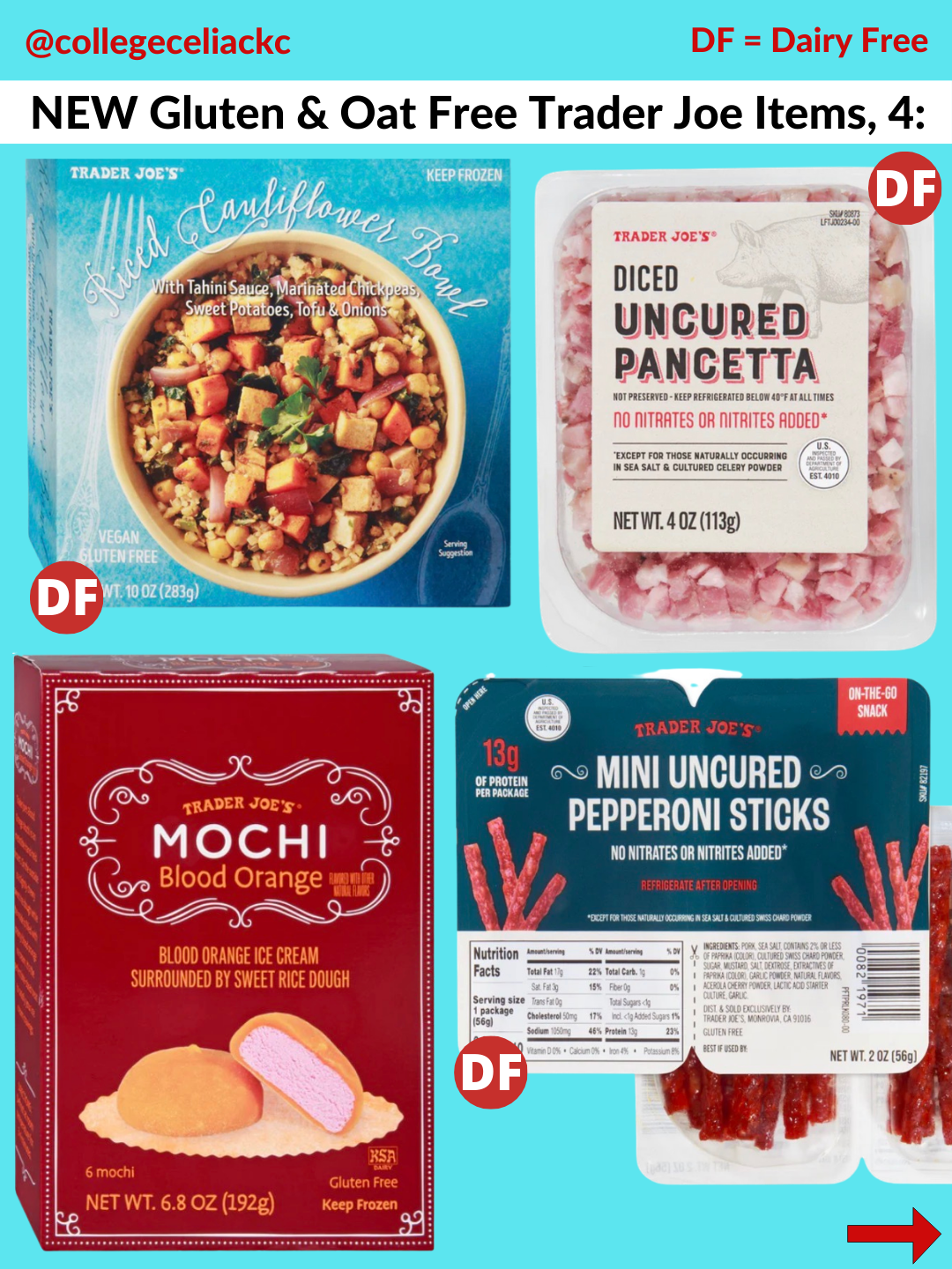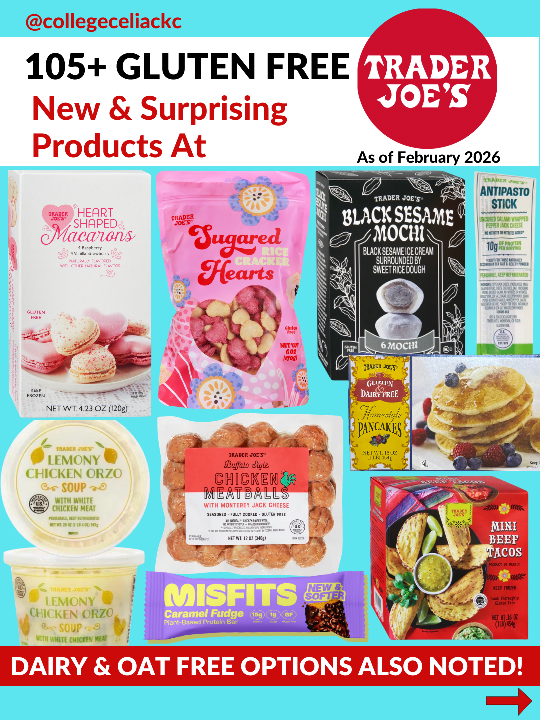 If you don’t live near a Trader Joe’s, you can find round ups for many more stores on my blog here and on my Instagram, @collegeceliackc, organized by store in my story highlights!