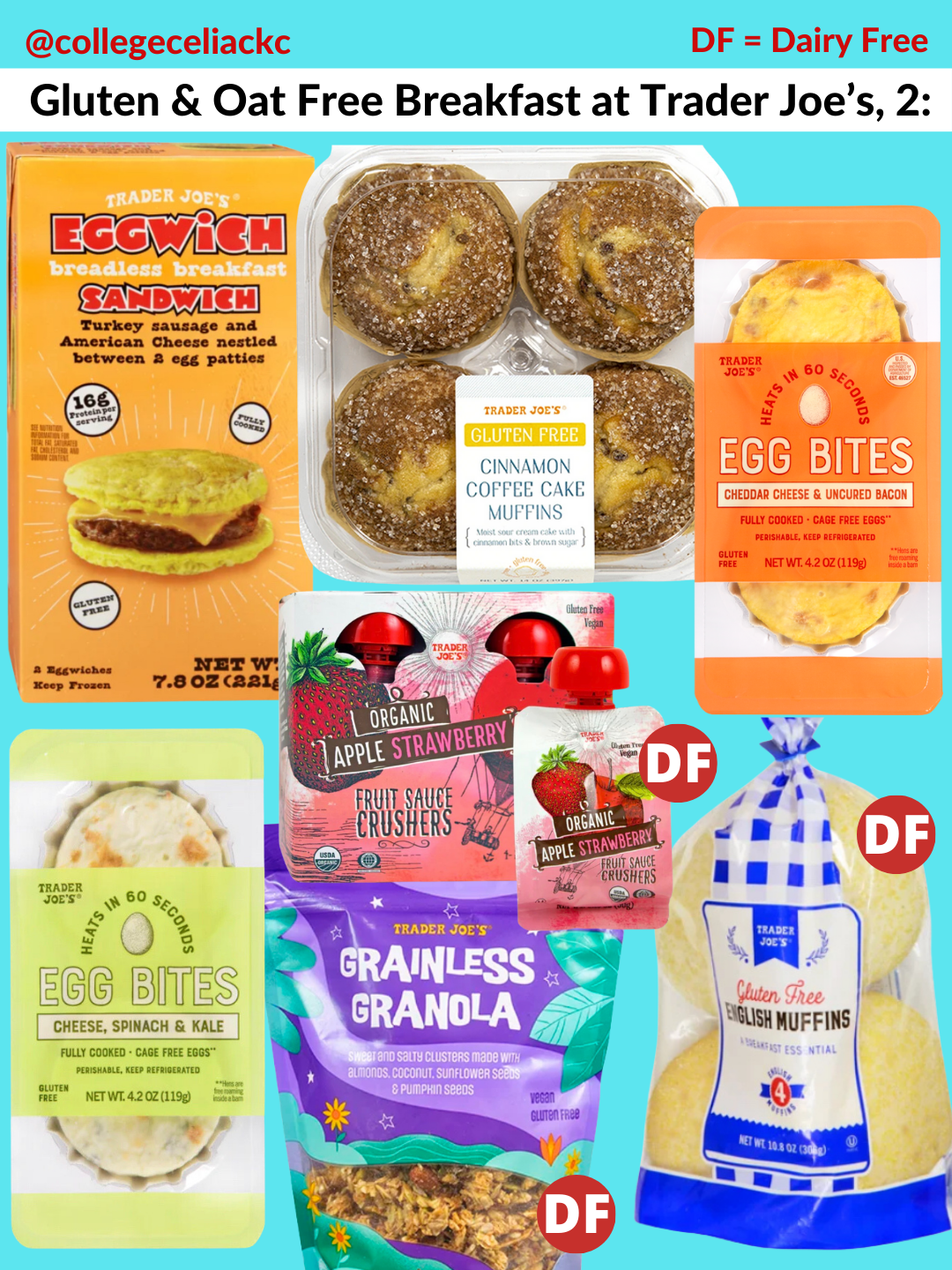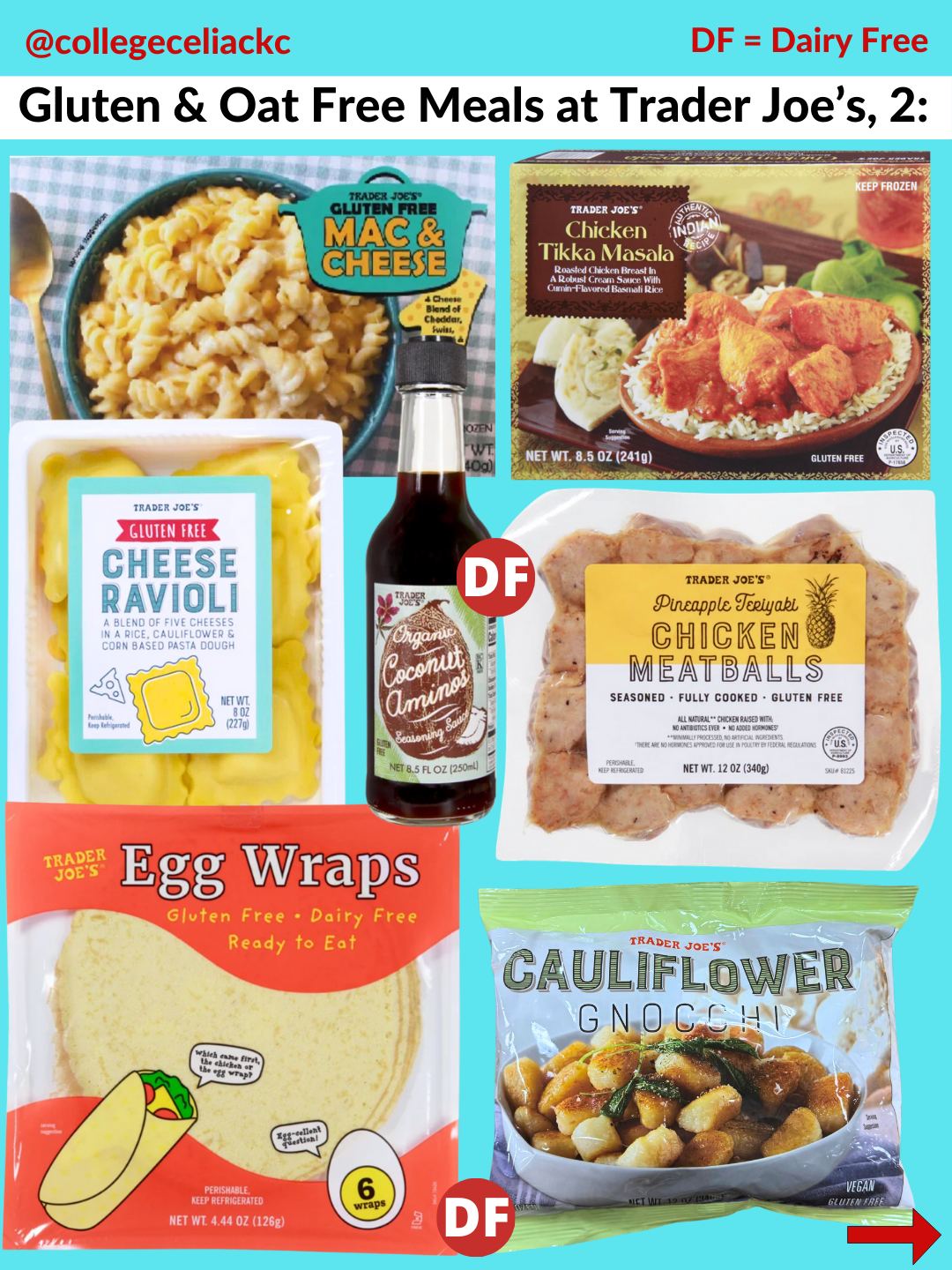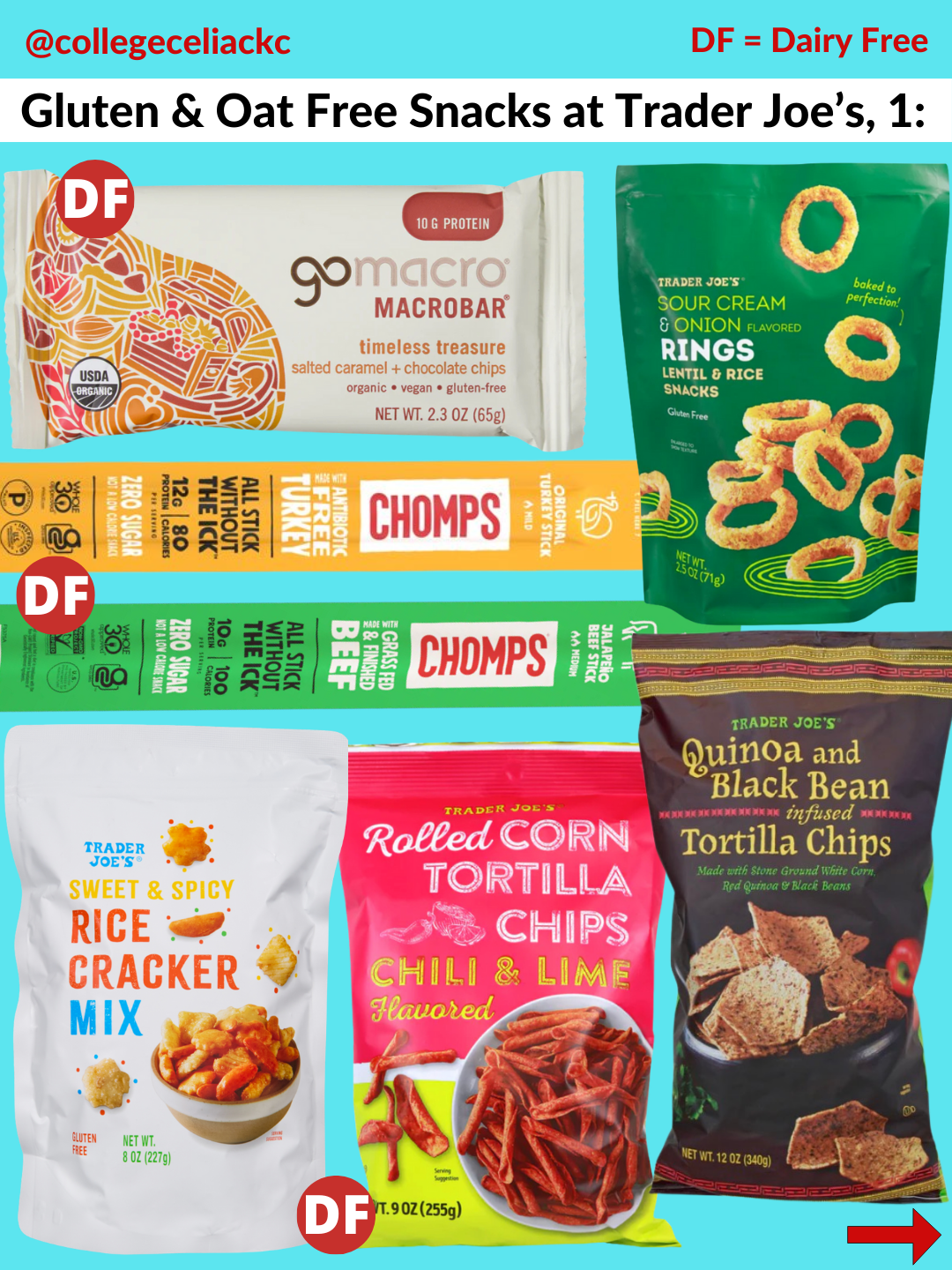If you don’t live near a Trader Joe’s, you can find round ups for many more stores on my blog here and on my Instagram, @collegeceliackc, organized by store in my story highlights!