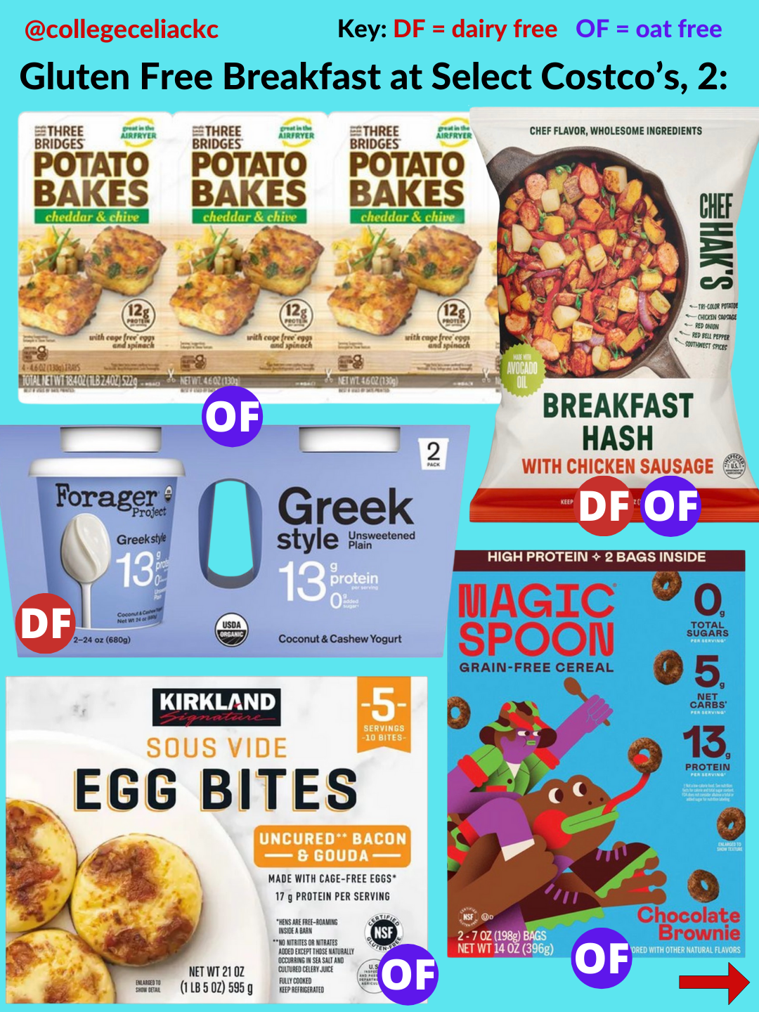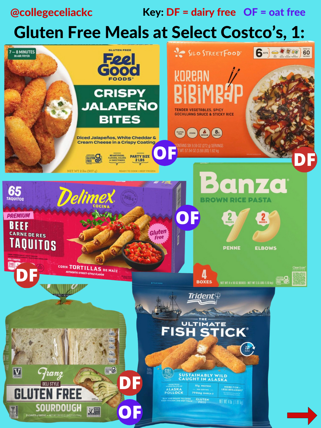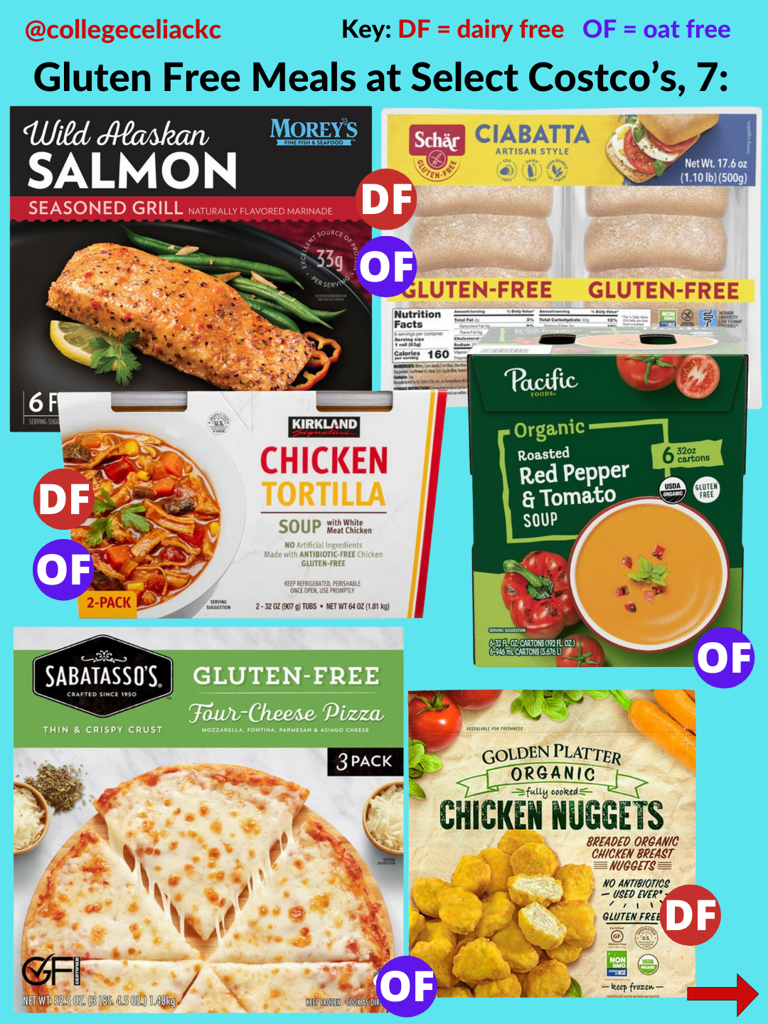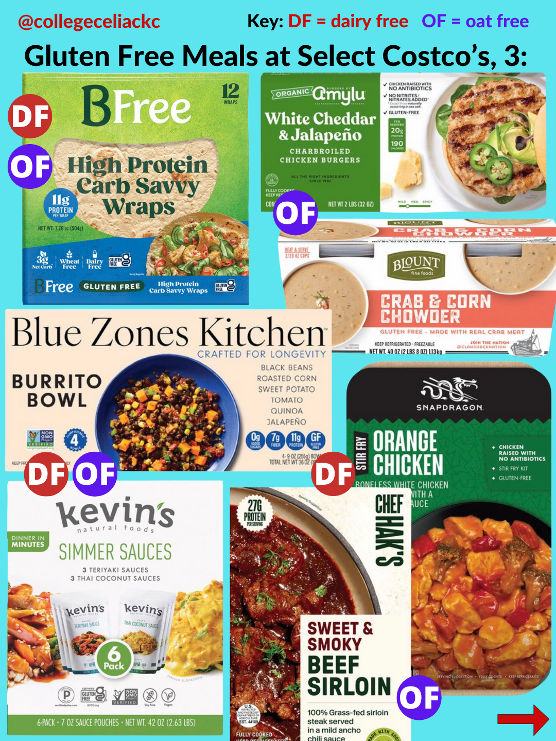 If you’re looking for the best new gluten free products at Costco as of January 2026, this is the post for you. Keep reading to discover 109+ gluten free foods at US Costco’s now. All gluten free and dairy free foods are indicated with the red “DF” button and oat free options are marked with the purple “OF” button.