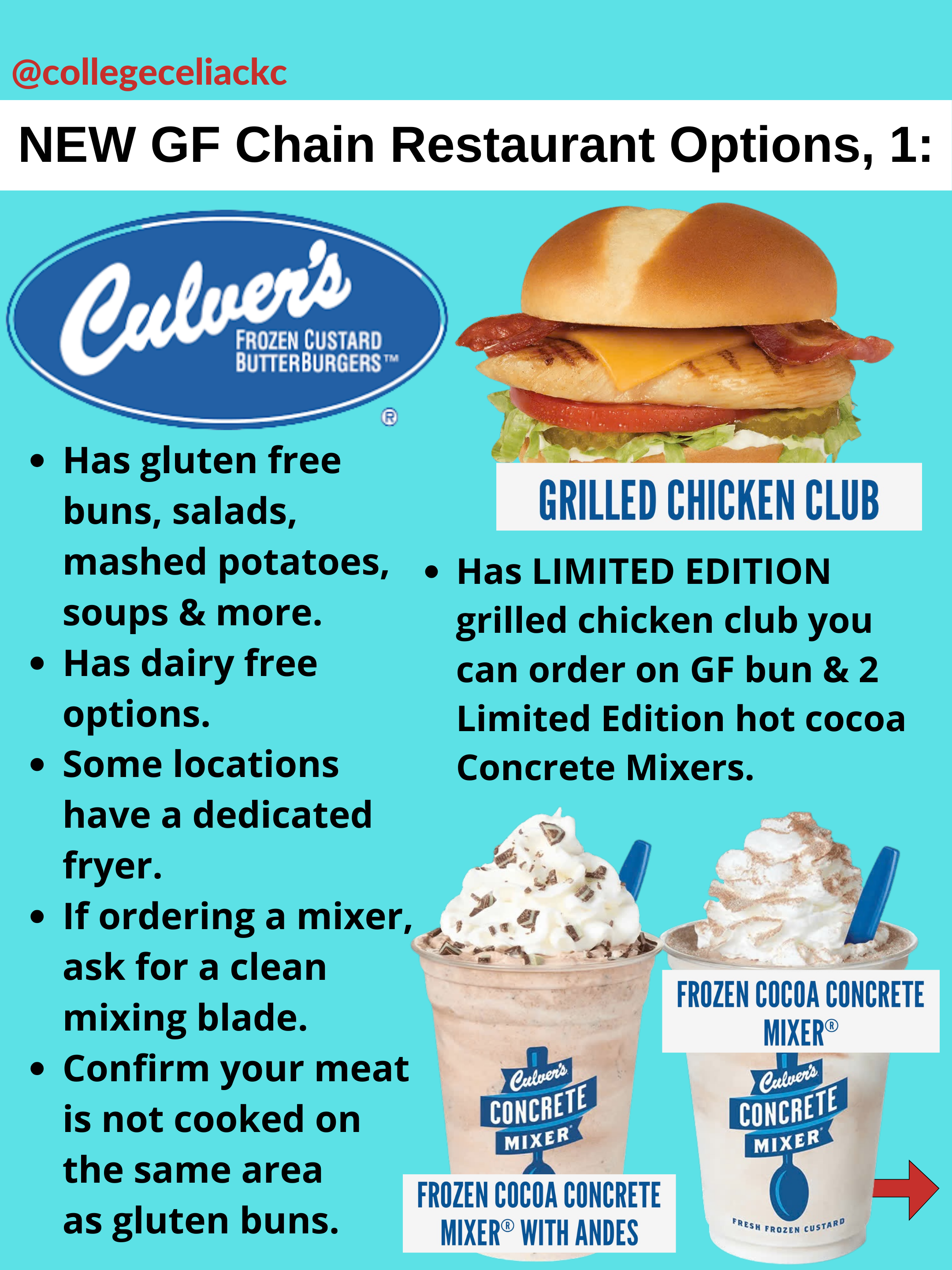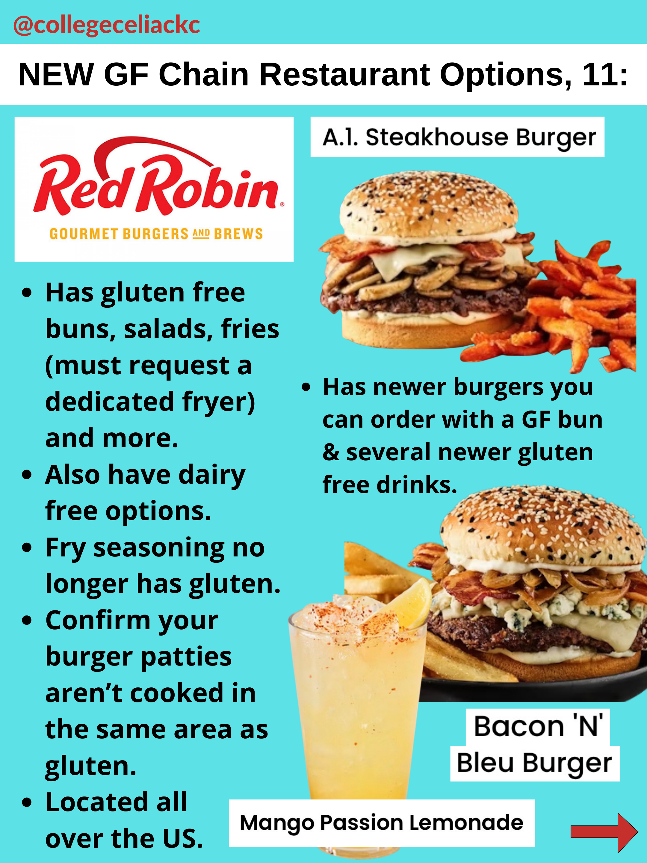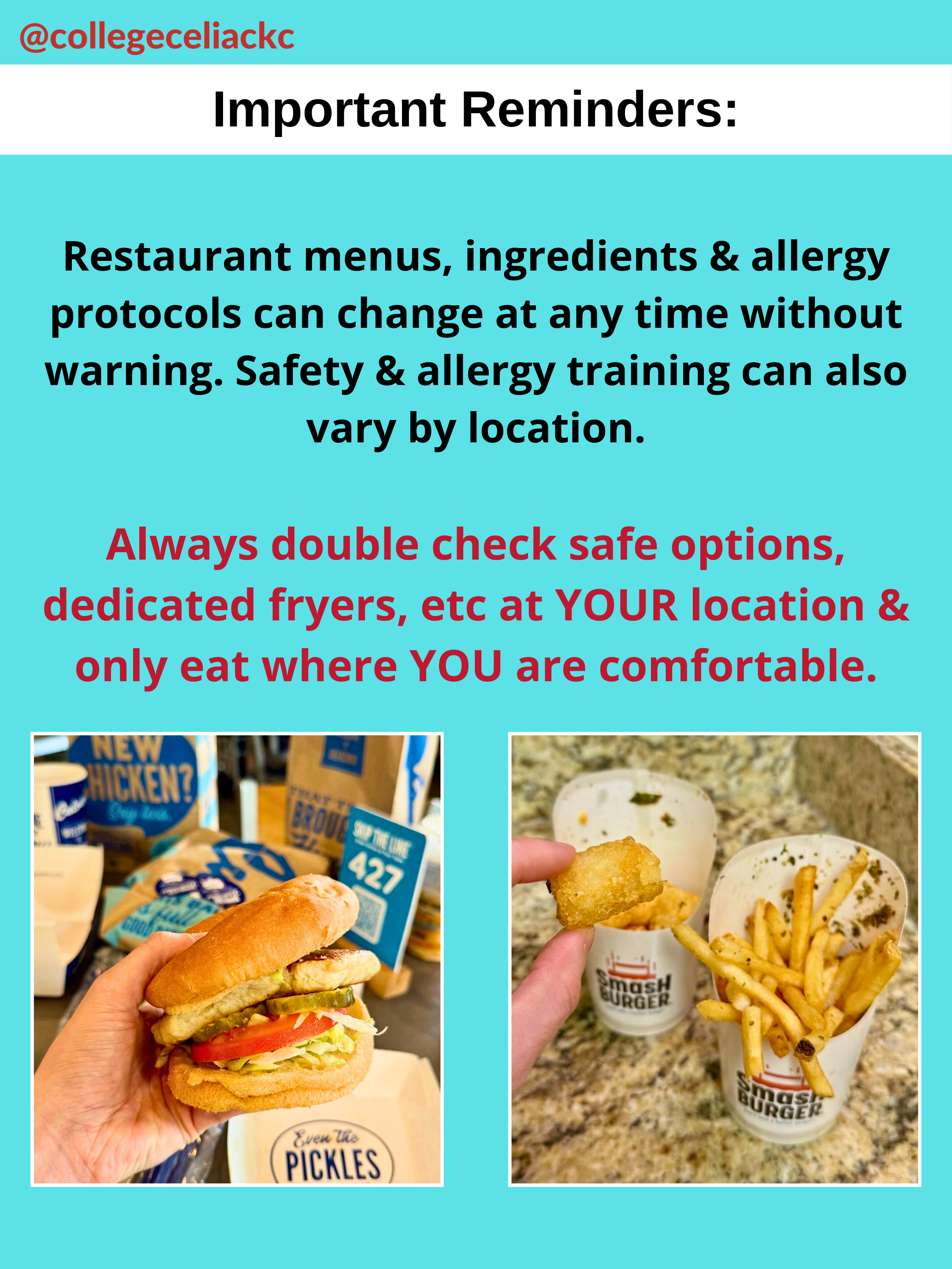 Like I always say, restaurant chains can vary in safety, training and dedicated fryer space by location. Only eat where YOU are comfortable! I also tried to indicate which restaurants have dairy free options for those who need both.