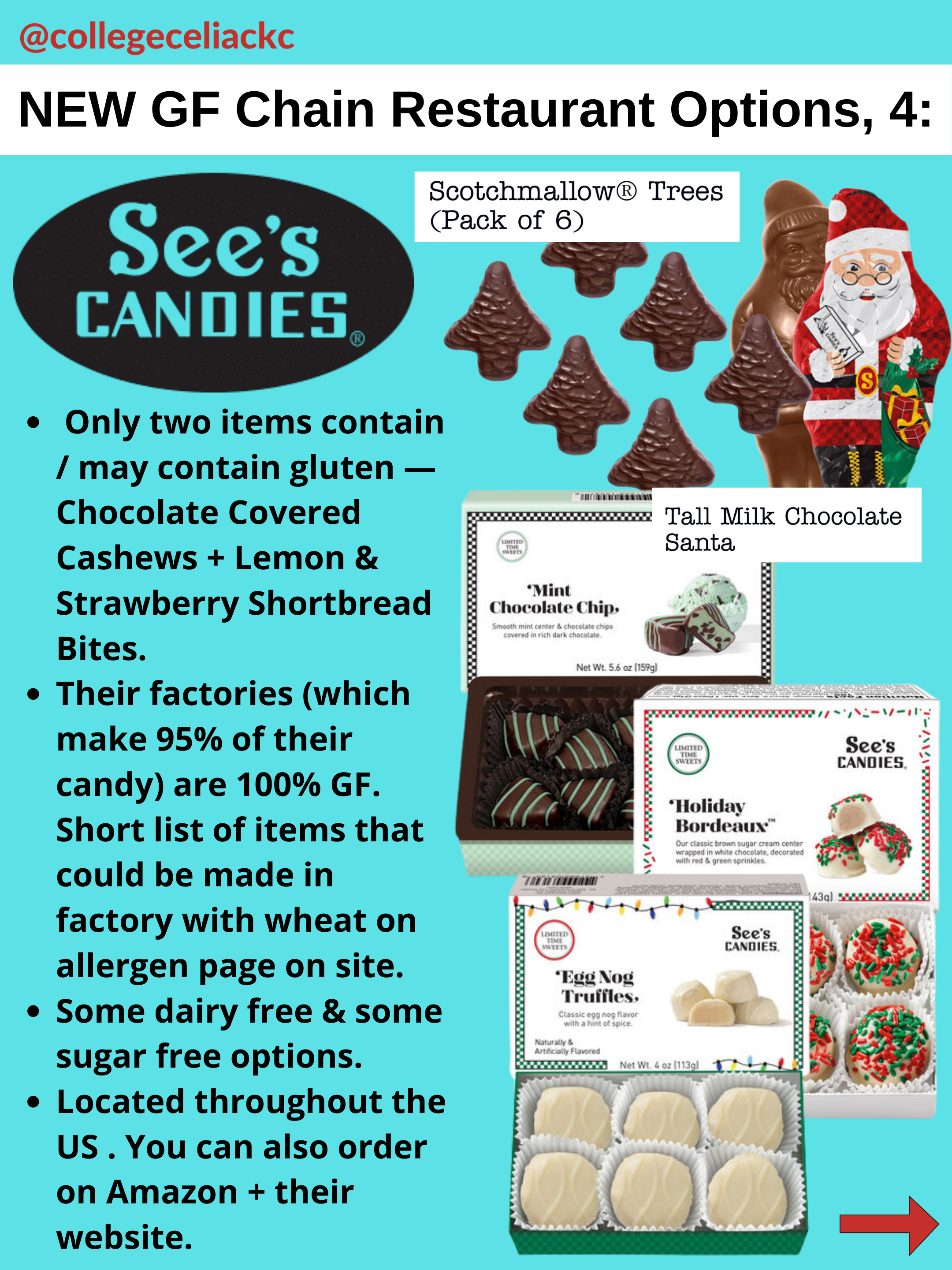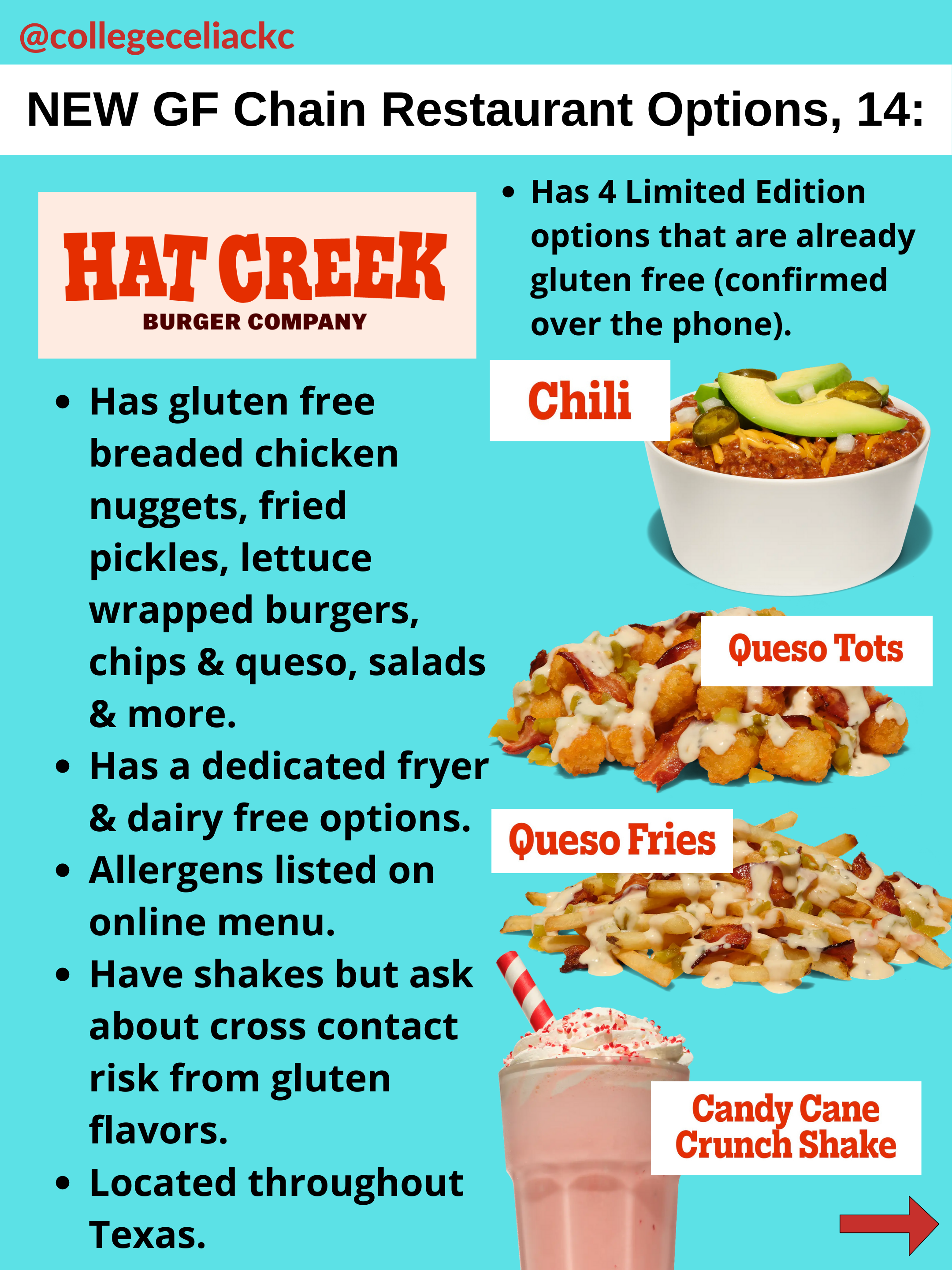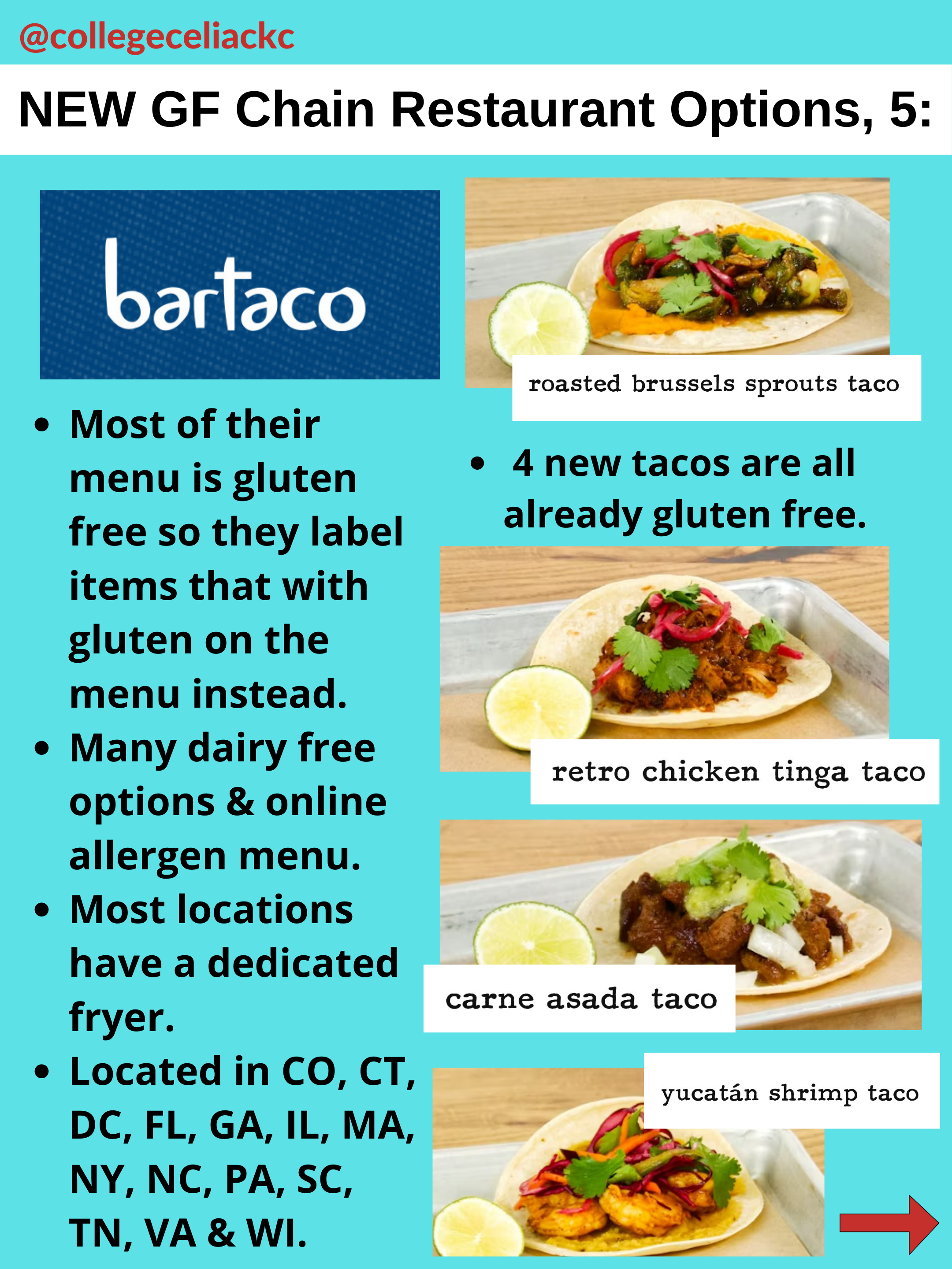 Like I always say, restaurant chains can vary in safety, training and dedicated fryer space by location. Only eat where YOU are comfortable! I also tried to indicate which restaurants have dairy free options for those who need both.