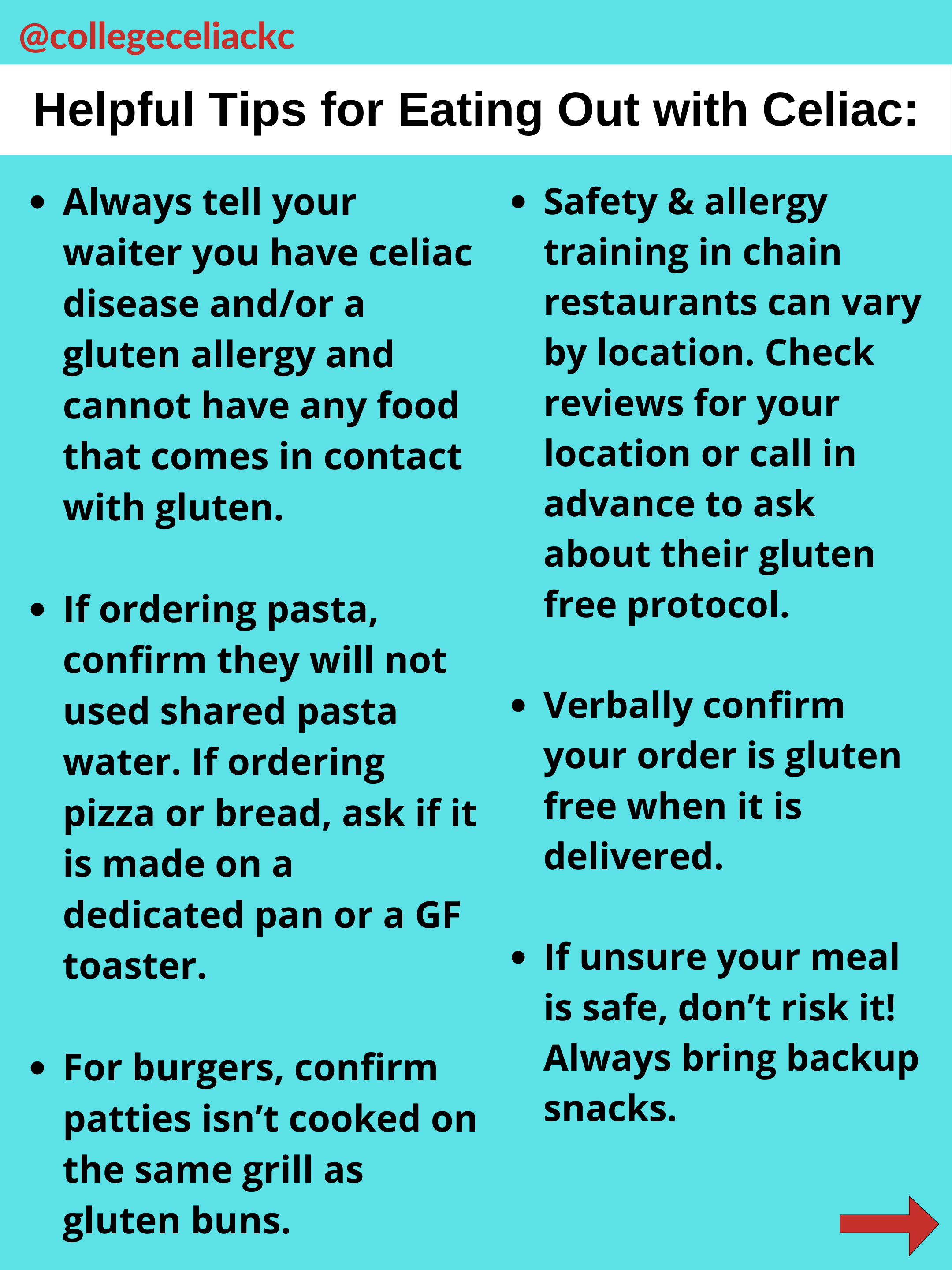 Read to the end of this guide for suggestions on helpful questions or statements to make when eating out with celiac.