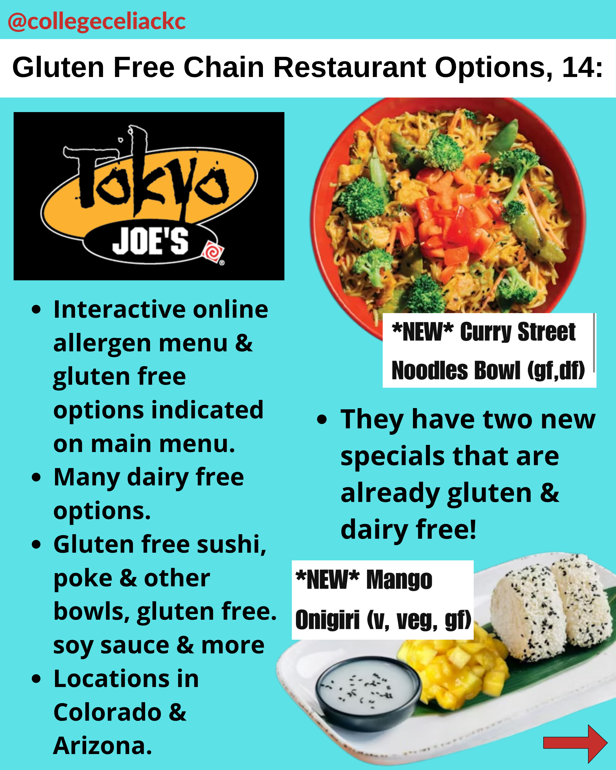 Like I always say, restaurant chains can vary in safety, training and dedicated fryer space by location. Only eat where YOU are comfortable! I also tried to indicate which restaurants have dairy free options for those who need both.