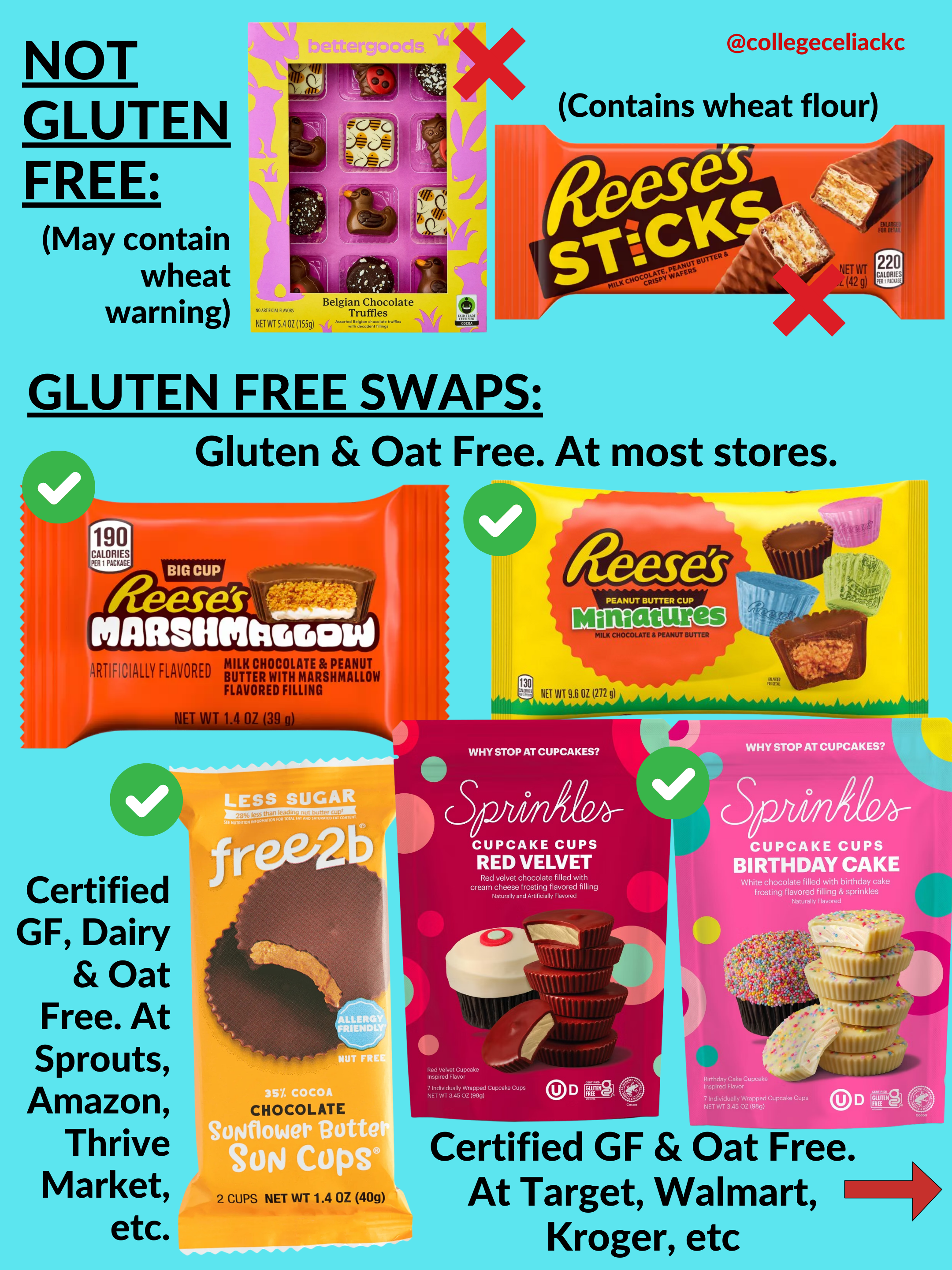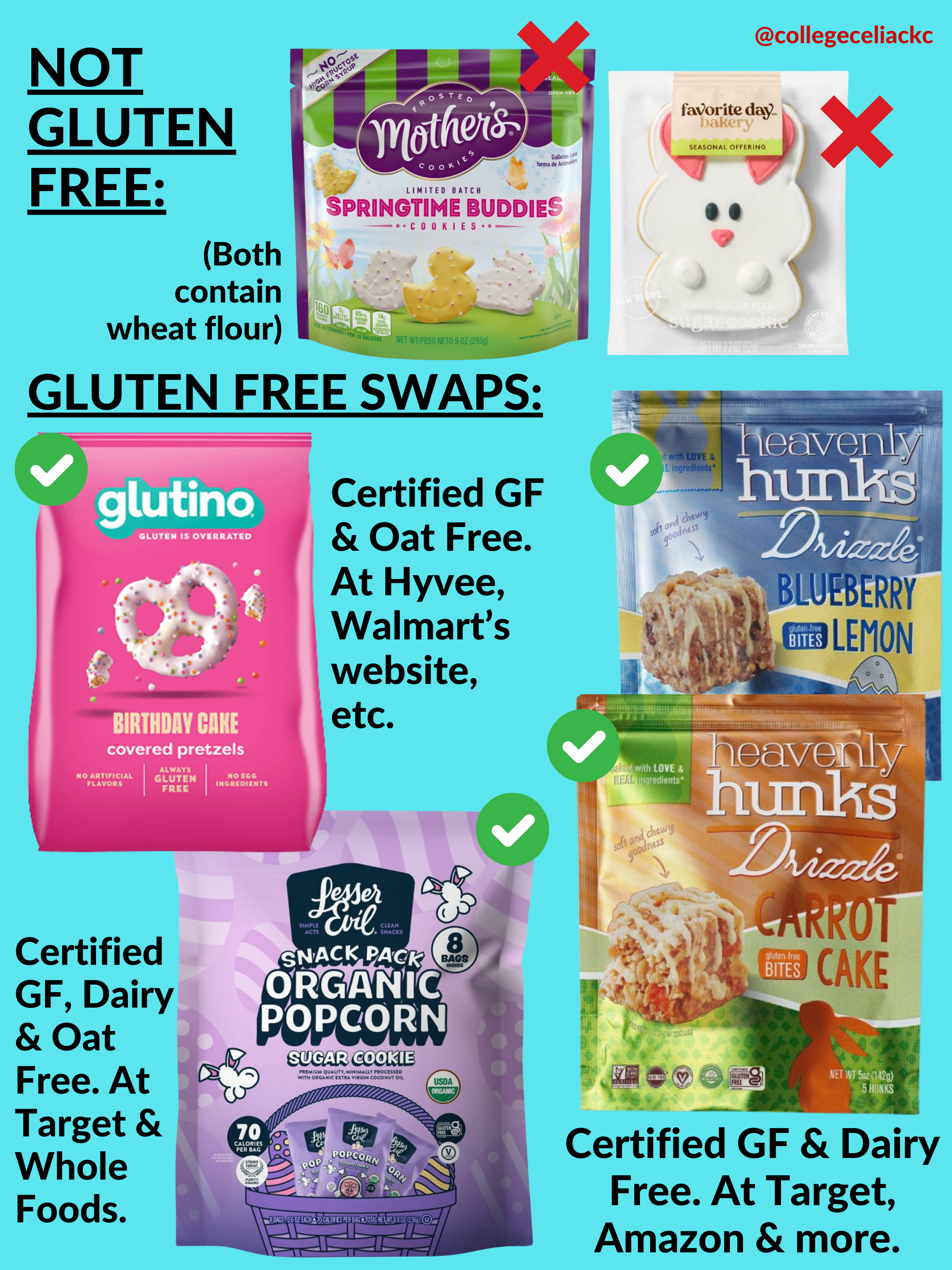 As always, read labels to ensure these fit YOUR unique dietary needs. And follow me on Instagram at @collegeceliackc for even more gluten free product recommendations, store round ups, celiac memes, and more.