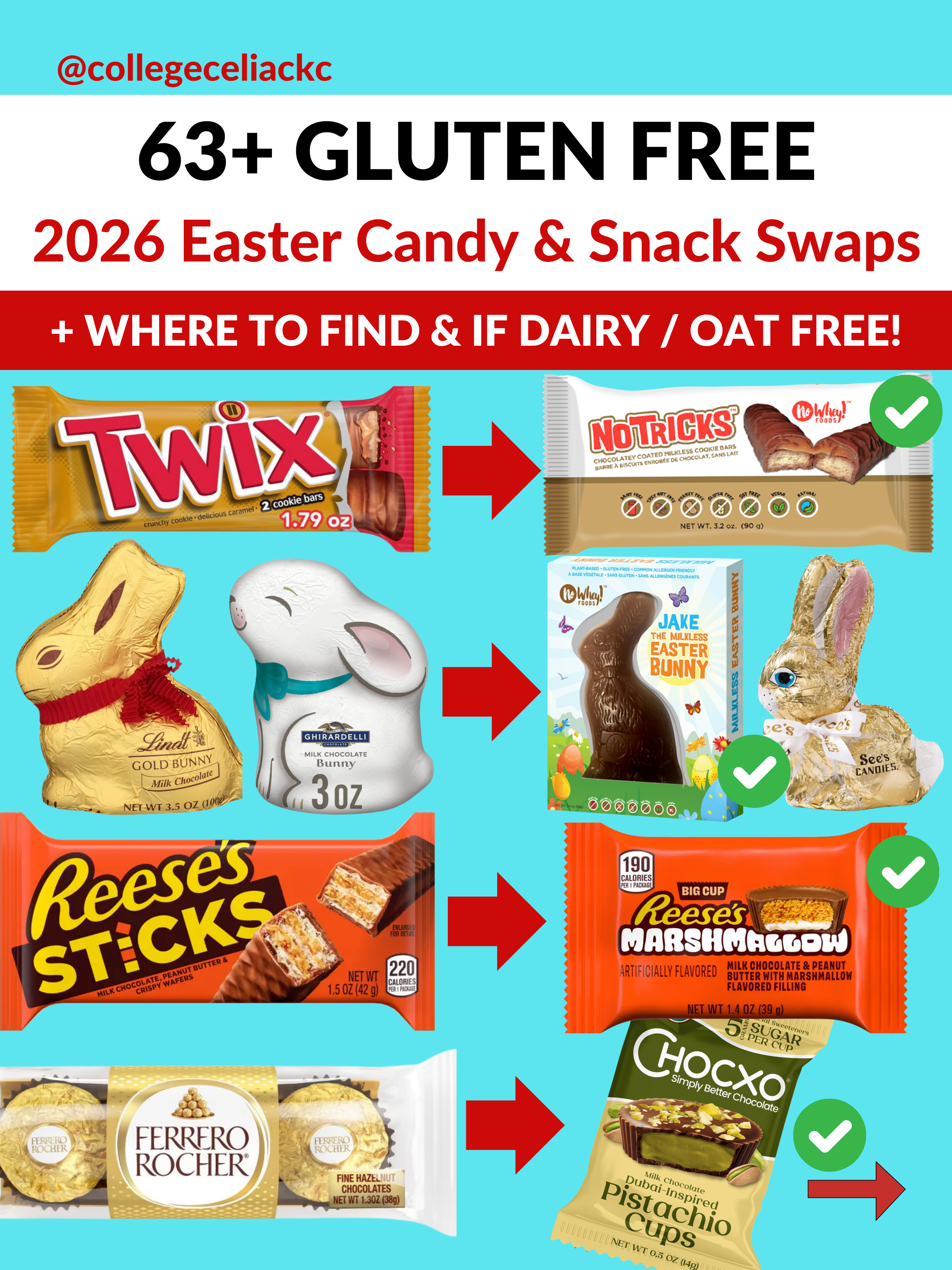 If you’re looking for that best gluten free Easter candy swaps for gluten-filled candy, this 2026 gluten free Easter candy & snacks guide is for you! It features over 63 gluten free Easter candies and snacks, including where to find, dairy free and oat free Easter candy options. Plus, it highlights surprisingly gluten-filled candies to avoid this year!
